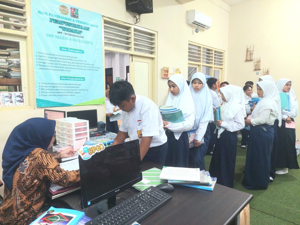 Perpustakaan Wicaka SMP Negeri 4 Yogyakarta melaksanakan kegiatan peminjaman buku